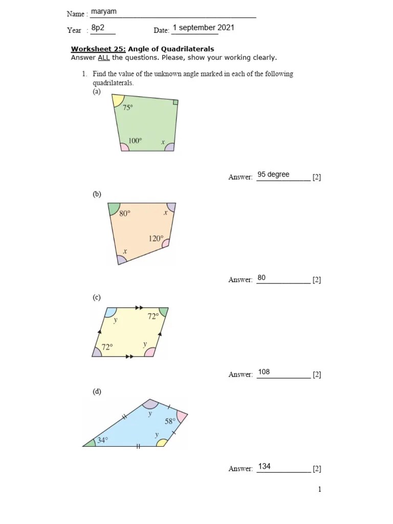 Worksheet 25 Angle Of Quadrilaterals